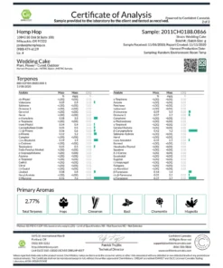 Wedding Cake enthält hohe Mengen der Terpene Ocimen, Caryophyllen und Myrcen. Diese sorgen für eine Kombination aus Auftrieb, Beruhigung und Stressabbau.